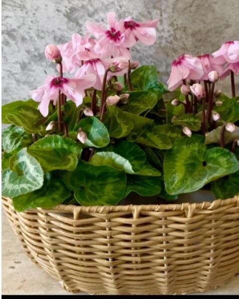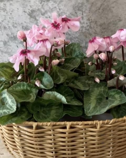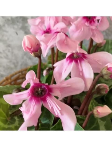 シクラメン「イリュージアピンクラテ」は上向きに花が咲き、株を覆いつくすほど豪華なシクラメン。